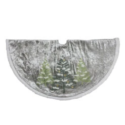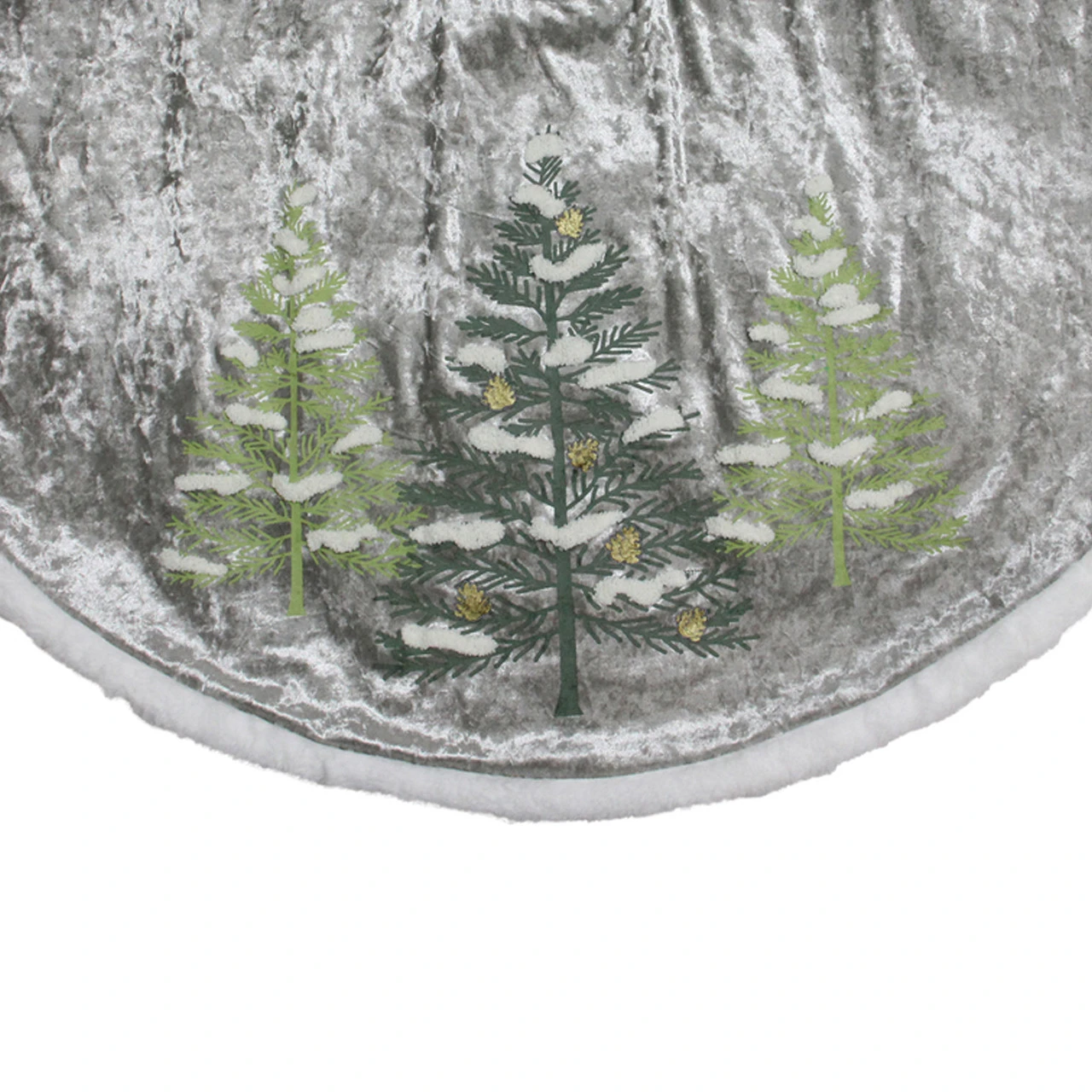 Gray and green Christmas tree skirt with white border