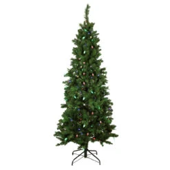 7′ Pre-Lit Slim Mixed Long Needle Pine Artificial Christmas Tree – Multicolor LED Lights