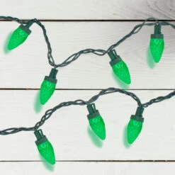 50 Count Green LED C7 Faceted Christmas Lights, 20.25 Ft Green Wire