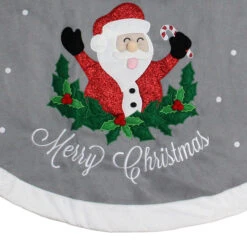 48″ Gray And White Traditional Happy Santa Christmas Tree Skirt