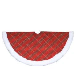 20″ Red And Green Lodge Knitted Mini Christmas Tree Skirt With Sherpa Trim