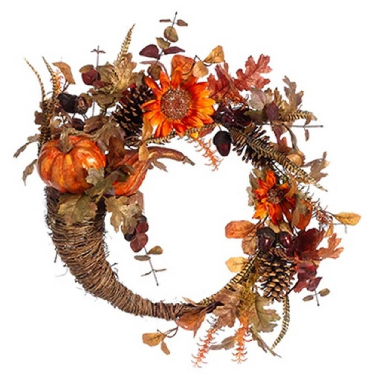 Pumpkin and sunflower cornucopia artificial Thanksgiving wreath