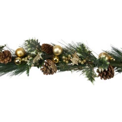 6’x 8″ Pre-Lit Decorated Burgundy And Gold Pine Artificial Christmas Garland, Cool White LED Lights