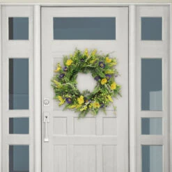 Yellow And Purple Faux Twig Spring Mixed Floral Wreath – 24-Inch, Unlit
