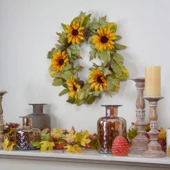 Yellow Sunflower And Pine Cone Artificial Fall Harvest Wreath – 24 Inch, Unlit