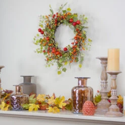 24″ Red And Bronze Berry Pine Cone And Ball Ornament Artificial Christmas Wreath – Unlit