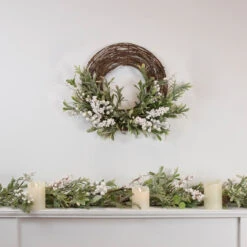Artificial Christmas Twig Wreath With Frosted Foliage And Berries, 24-Inch, Unlit